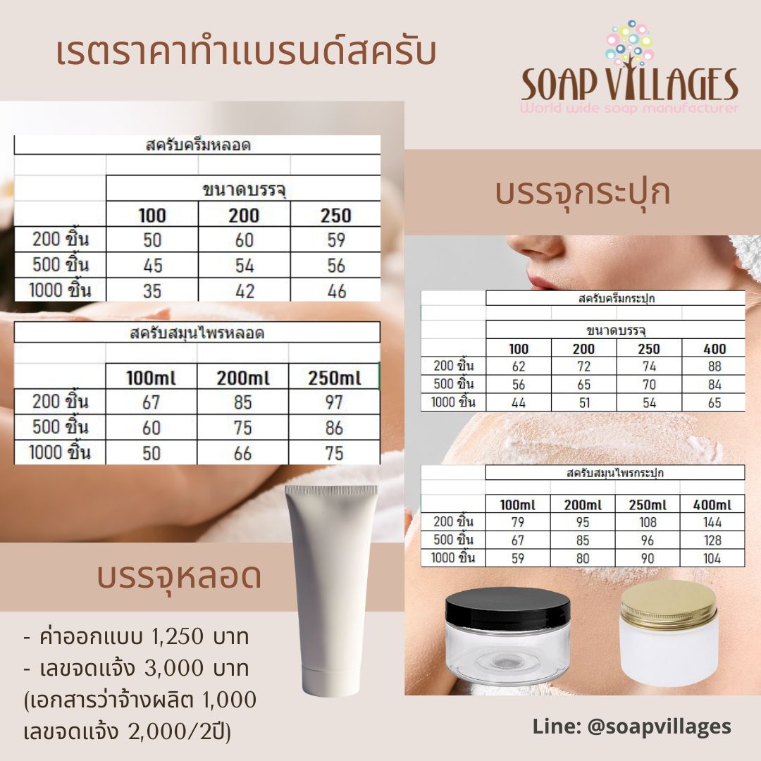 สินค้าทำแบรนด์ของเรา : ครีม โลชั่น สครับ ยาหม่อง สบู่สมุนไพร สบู่ผิวขาว
